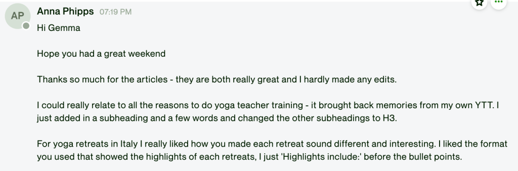 They had previously hired “writers” who may have had experience with content writing but knew nothing about the yoga and wellness industry.